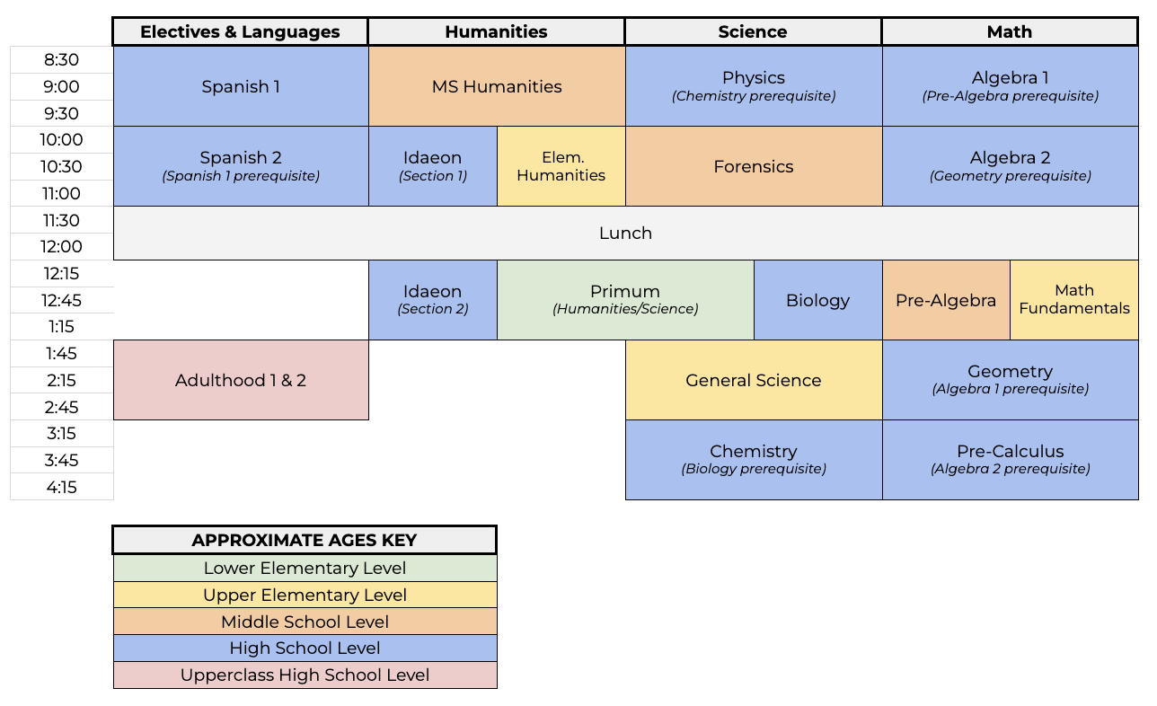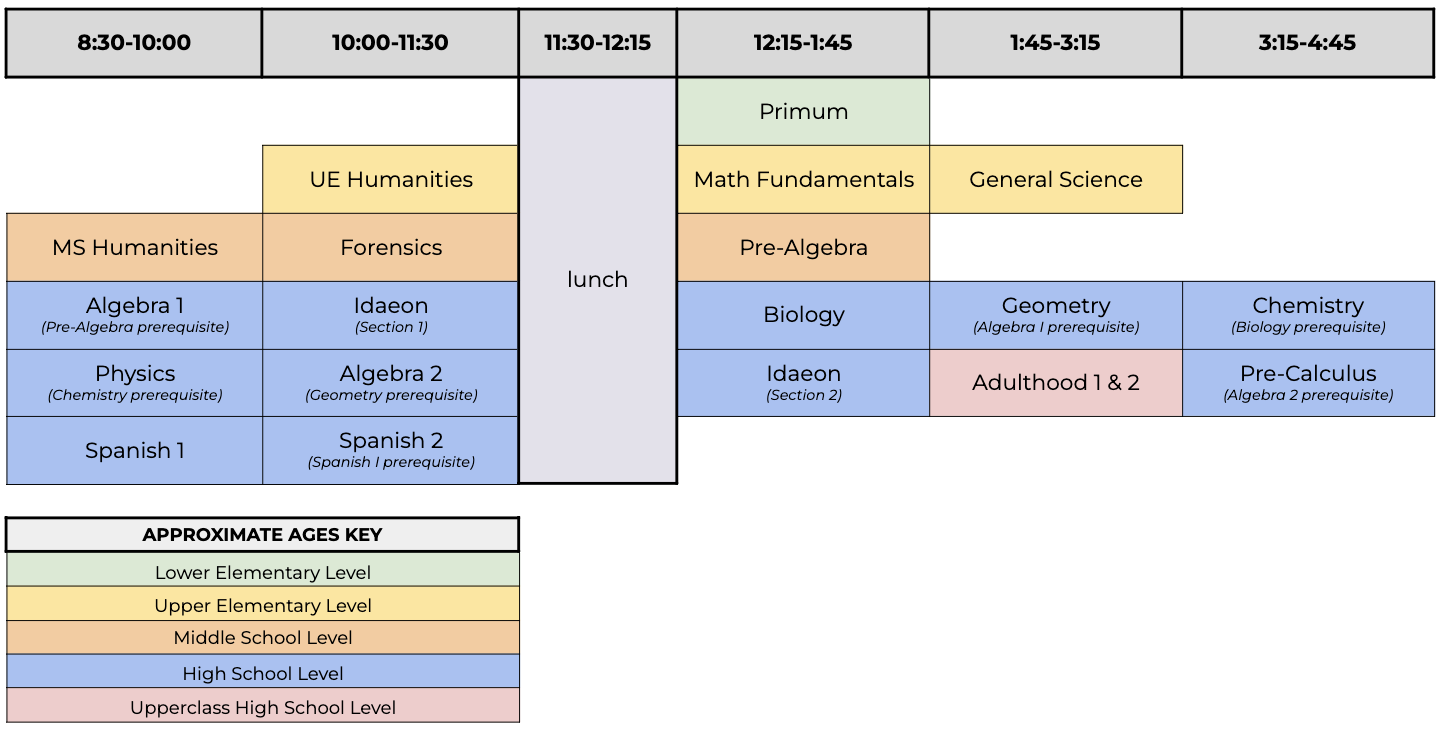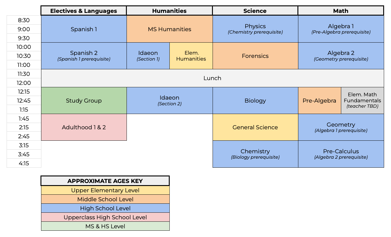 Before their first day in a Scholé Hall class, you and your student will sign an agreement of understanding that in between classes, students are independent and responsible for their own actions and whereabouts. This includes arriving to all classes on time and prepared.